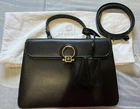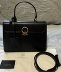 This elegant Versace top handle bag is a must-have accessory for any fashion-forward woman. Crafted from high-quality leather, this black bag exudes luxury and sophistication. Whether you prefer to carry it by the top handle or wear it as a crossbody, it is the perfect complement to any outfit. With its spacious interior and versatile design, this bag is perfect for any occasion. Whether you're running errands or attending a formal event, this bag will keep your essentials organized and within reach. Elevate your style with this stunning Versace bag. In good used condition. Please see photo for condition of bag. Measurements are: 12.5in x 8.5in x 3in