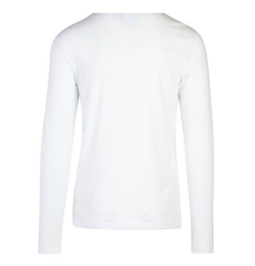 This Versace Long Sleeve T-shirt for men in White features a striking Gold Medusa Logo accent, adding a touch of luxury and designer flair to the piece. Made in Italy, the T-shirt offers a Regular fit with Long Sleeves, making it a stylish and versatile addition to any wardrobe. With its iconic branding and high-quality craftsmanship, this T-shirt is sure to elevate any outfit with a touch of sophistication. This Item is 100% Authentic. Italy Size 5 America Size L
