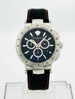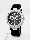 Case Size 46mm / 1.811 inches stainless steel round case, top ring stainless steel with tachymeter scale. Crown with Medusa head embossed. Dial black with clous de Paris pattern, Medusa head and logo at 12 o'clock and luminous hands. Strap black sporty calf leather strap with butterfly buckle. Comes with original box, book and Versace watch pouch. International Buyers - Please Note: Import duties, taxes, and charges are not included in the item price or shipping cost. These charges are the buyer's responsibility. Please check with your country's customs office to determine what these additional costs will be prior to buying.