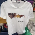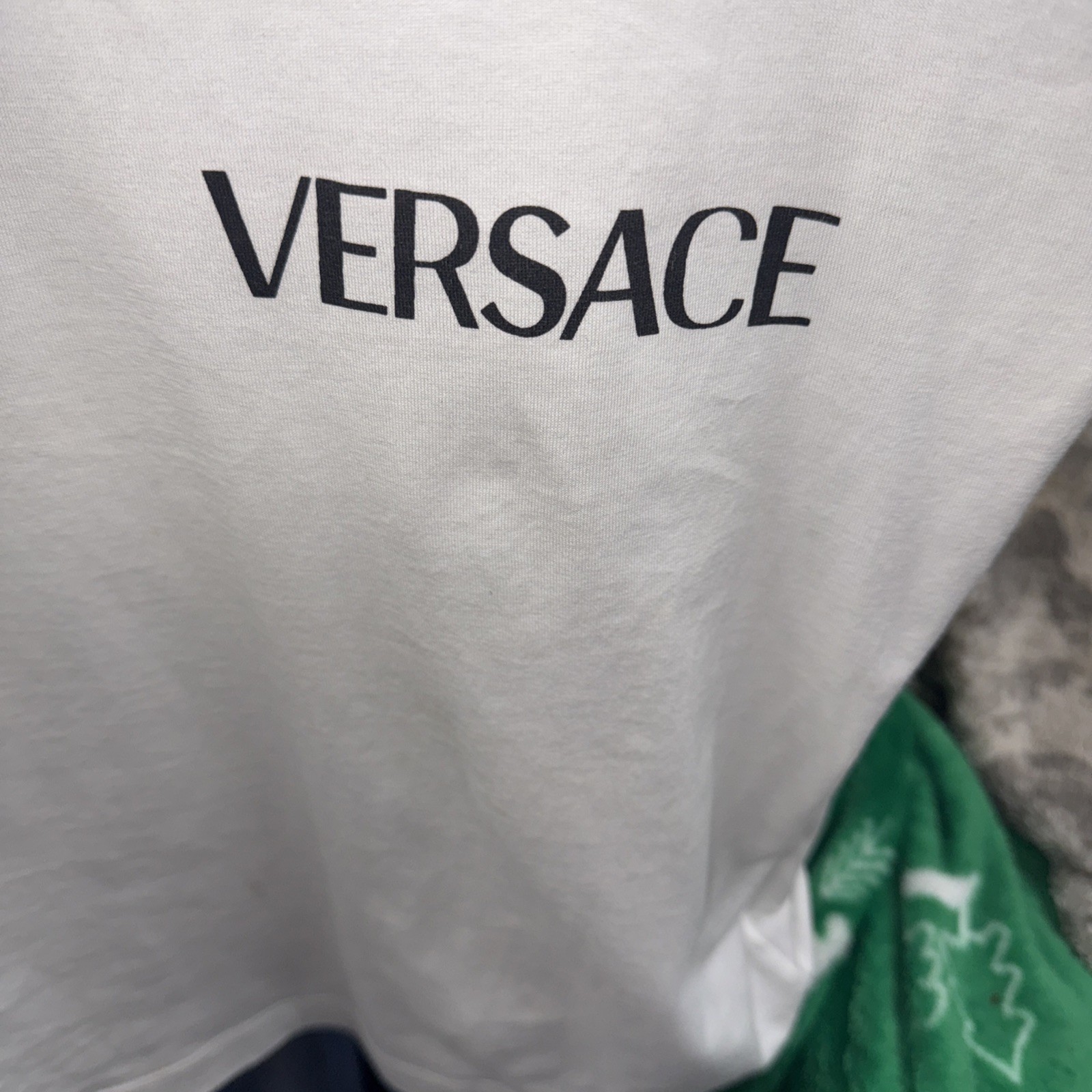 The Versace Seashell Baroque Mitchel Fit Cotton T-shirt in size L a classic and designer piece featuring embroidered logo accents. Made of soft cotton material, this white shirt has a crew neckline and short sleeves, providing a comfortable and stylish fit for men. With its Italian origin and premium branding, this t-shirt is a versatile wardrobe staple that combines fashion and quality for a sophisticated look.