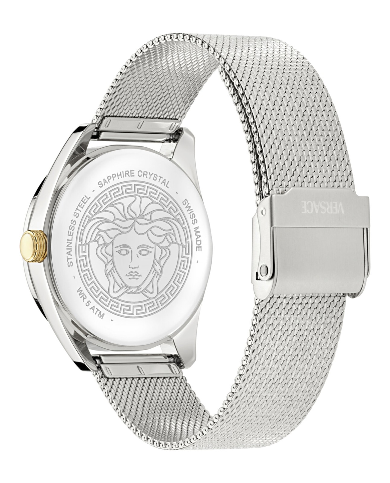 Versace Womens Stainless Steel 36mm Bracelet Fashion Watch Our eBay Store Versace New V-Circle Bracelet Watch 36mm Stainless Steel Case Stainless Steel Bracelet Silver Guilloche Dial 5 ATM Jewelry Clasp We know you will love your new items. If you are not completely satisfied with your purchase, you have 30 days to submit a return
