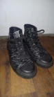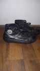 Step into sophistication with these Versace for H&M casual sneakers. Crafted with a sleek black leather upper and a matching leather outsole, these shoes offer both style and durability. The flecked pattern adds a touch of modernity, while the comfort feature ensures a pleasant wearing experience throughout the day. Perfect for casual occasions, these sneakers come in a standard shoe width and size 11 for a great fit. The leather lining and insole material further enhance the shoe's quality and comfort. Add a touch of Versace's iconic style to your wardrobe with these street model sneakers.