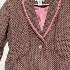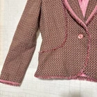 Versailles Women’s SZ 8 Pink Acrylic Wool Blend Tweed Fringed Blazer Padded. Condition is Pre-owned. Shipped with USPS Ground Advantage.