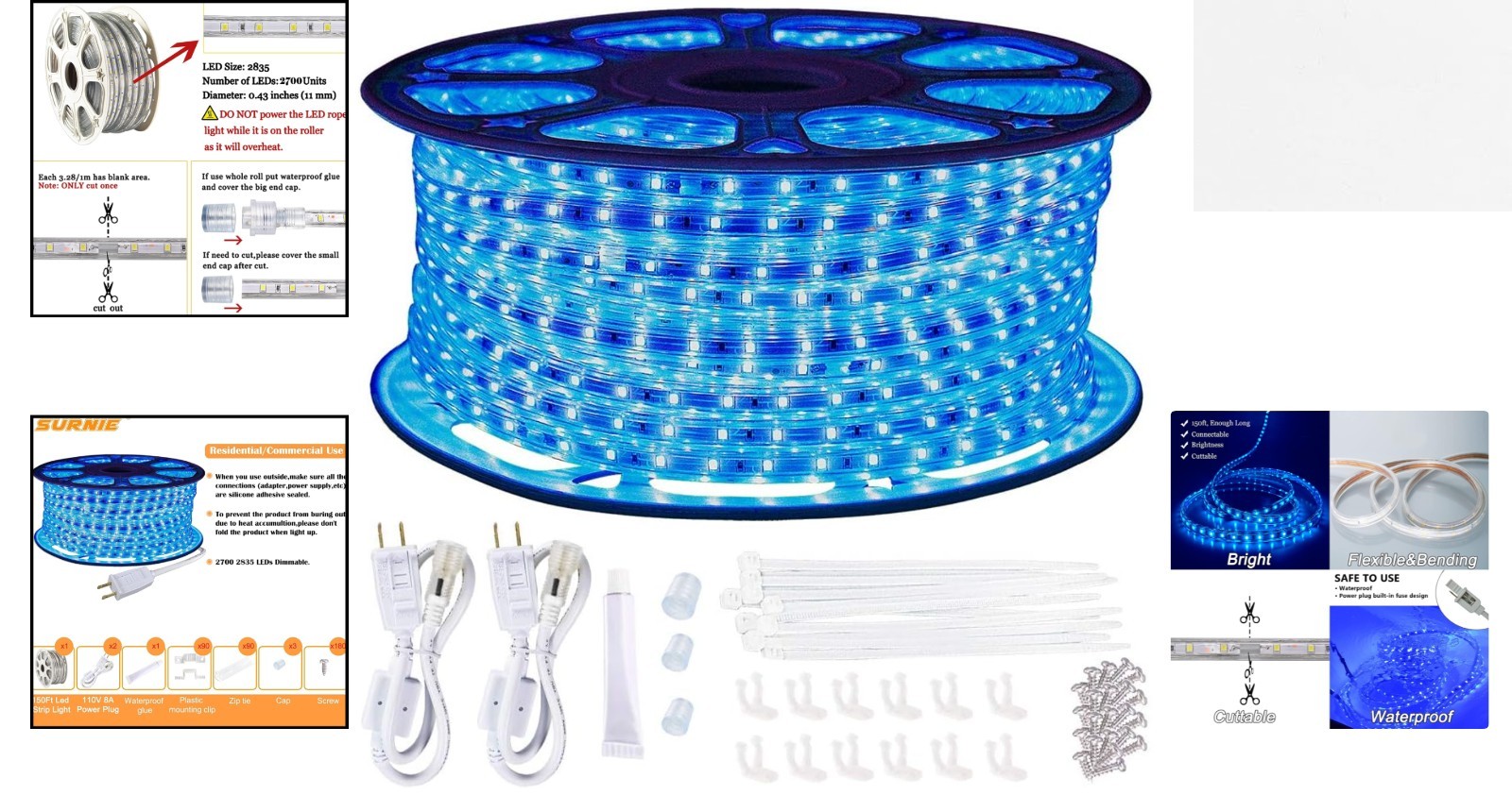 50ft Waterproof Connectable Blue LED Rope Lights for Outdoor Decor