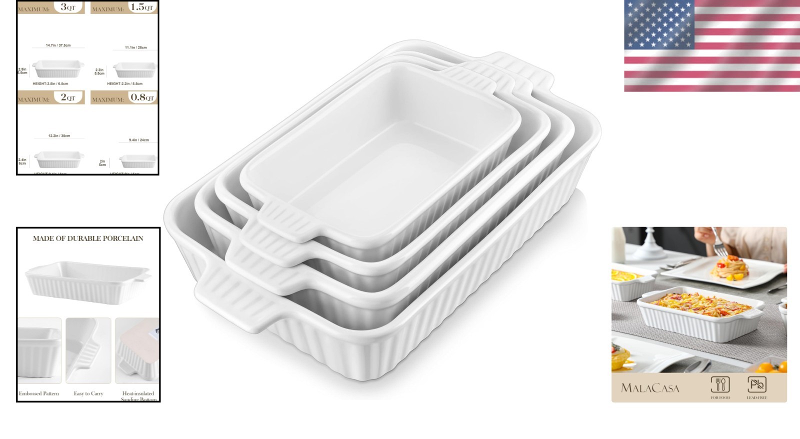 $ 60.49Porcelain Baking Dishes Set of 4, White, 3QT/2QT/1.5QT/0.8QT