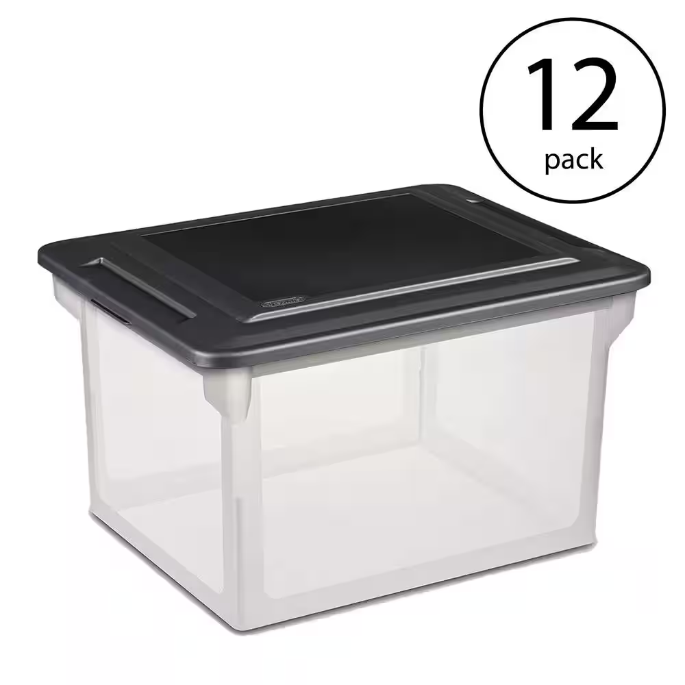 Fast Shipping On All Items 30 Days Money Guarantee Customer Support Excellent Service 100% Satisfaction Satisfaction Guaranteed Versatile Clear Organizing Storage File Box with Lid (12-Pack) Specification Color Family Clear Color/Finish Clear Included No additional components or accessories are included Lid Color Black Lid/Top Mechanism Detached Material Plastic Pack Size 12 Returnable 90-Day Shape Rectangle Storage Capacity 25 qt Storage Features Durable,Includes Top,Stackable Storage Product Type Storage Bins and Totes Weight Capacity (lb) 50 lb Manufacturer Warranty No warranty available Product Depth (in) 18.5 in Product Height (in) 11 in Product Width (in) 14 in 14.0 inches x 18.5 inches x 11.0 inches. Weight: 50.0 lb Item Description It's hard to be productive while surrounded by clutter. Keep your office and workspace neat and organized with the 12-pack Sterilite Convenient Versatile Clear Organizing Storage File Box with Lid. This bundle comes with 12 packs of storage file boxes for all your needs. The overall dimensions of this item are 18.5 in. long, 14 in. wide, and 11 in. tall, making it an ideal solution for keeping receipts, bills, taxes, and paperwork sorted and contained. Customize letter or legal-sized hanging folders and file neatly organized, while reducing clutter around the home or office. The tight-fit snap black lid keeps files dust-free and protected, while the indexed top allows for multiple storage containers to be stacked, maximizing vertical storage space. The organizer's contoured design provides a comfortable grip surface for easy transporting when files need to be taken on the go or relocated. Create a productive environment with the help of a 12-pack Sterilite Convenient Versatile Clear Organizing Storage File Box with Lid. About us We offer the best prices around on high quality products. Our E-store includes media such as books, movies, music and games while offering electronics, toys, sporting apparel, clothing, tools, general home, garden items and more. Shipping We are always working hard to ensure your package arrives as soon as possible. Please understand that some factors like weather, high postal traffic, and the performance of shipping companies are outside of our control. We offer free shipping to the lower 48 states and ship within 2-3 business days of payment, usually sooner. We do not accept P.O. Boxes. Please provide a physical address. For shipping outside of the continental USA, we only use eBay's Global Shipping Program.The item is shipped to KY and then sent to the rest of the world. International customers are responsible for all duties and taxes. Continue to check out to calculate costs for shipping the item to your country. Messages regarding eBay's Global Shipping Program MUST be directed at eBay EXCLUSIVELY. Returns We offer a 30-Day Return Policy on items in which you are not completely satisfied with. You have the option of a full-refund or an exchange of the item. No returns are available on items shipped outside of the USA Satisfaction We try over very best to make sure every customer is completely satisfied. If there's a problem, message us! We're happy to help. Payment Options Shop With Confidence
