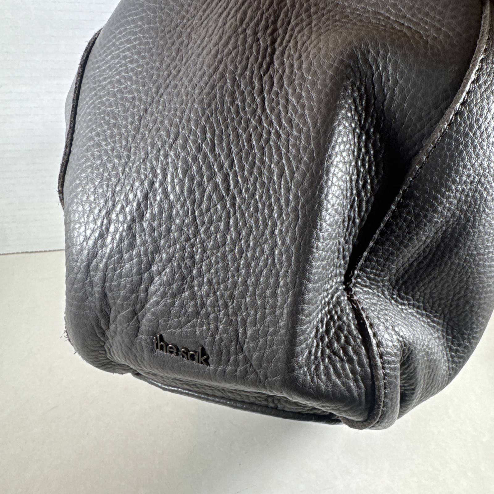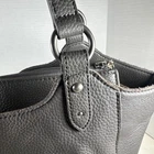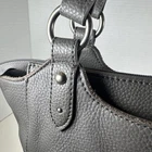 The Sak Bolinas Cement Gray Pebbled Leather Satchel Shoulder Bag is a versatile and stylish accessory for women. Made from high-quality leather with a pebbled finish, this medium-sized bag features a crescent shape and a zipper closure. The gray exterior color and silver hardware accents give it a sophisticated and classic look, perfect for various occasions including travel, casual outings, workwear, and business meetings. With double handles in the same color and a lined interior with inner pockets, this bag offers both functionality and style.
