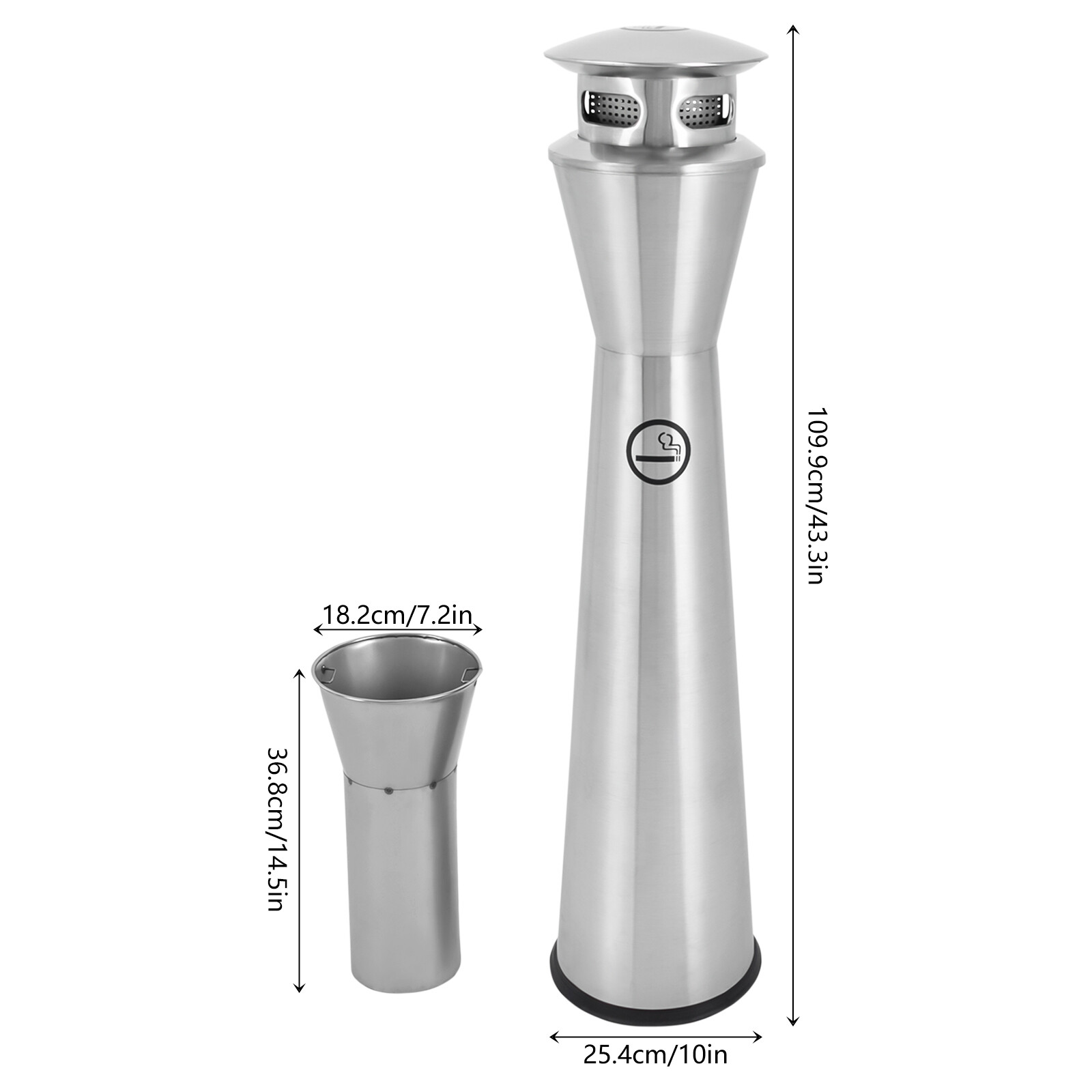 Description Littering cigarette butts in public places may cause potential safety hazards. To avoid this, our cigarette end collector with an inner barrel is the ideal choice for you. It can be set up in public smoking areas, your home, and anywhere else there is a need. With its elegant appearance, it blends into the surrounding environment, silently advocating a more civilized and environmentally friendly lifestyle, inviting every passer-by to participate in this green revolution of respect and love. Package Included 1* Cigarette End Collector with Inner Barrel ๐ WELCOME ๐ Description Littering cigarette butts in public places may cause potential safety hazards. To avoid this, our cigarette end collector with an inner barrel is the ideal choice for you. It can be set up in public smoking areas, your home, and anywhere else there is a need. With its elegant appearance, it blends into the surrounding environment, silently advocating a more civilized and environmentally friendly lifestyle, inviting every passer-by to participate in this green revolution of respect and love. Key Features Sturdy and Durable: 201 stainless steel with a wire drawing process makes this product resistant to corrosion, rain, and rust, and not easy to deform, so it can be used outdoors for a long time. User-friendly: The 43.3in height is designed for adult height, you can easily throw cigarette butts into the collector without bending over. The four-sided opening design allows you to throw ash from four directions at once, making it suitable for high-traffic areas. Thoughtful Design: The mesh extinguishing panel makes it easy to extinguish your cigarette butts, which is designed to keep cigarette butts separate from other rubbish and also prevent fires. Powerful Function: Throwing cigarette butts into the collector can reduces the workload of sanitation workers, and it can guide the public to form good habits and bring convenience to society. Large Capacity : With a large inner barrel ( 7.2*14.5in ) , it can hold about 1000 cigarette butts. The high capacity avoids frequent cleaning and reduces cleaning effort. Practical Waste Bin: When you have guests, you don't have to worry about them littering your yard or patio with cigarette butts, keeping your space clean. In addition, its removable inner bucket can be used as a separate bin, which is very convenient. Easy to Clean: The simple structure and smooth surface allow you to directly rinse with water or wipe the exterior with a damp cloth. Additionally, you can remove the inner barrel and clean it separately. Installation-free: You can use the product directly after receiving it on the ground without additional installation, which saves you time and energy. Modern Appearance: The classic silver scheme and cylindrical shape make this product easy to integrate into the surrounding environment, which is beautiful and practical. Good Customer Service: We stand behind all our guests and look forward to assisting you with your purchase. It is our pleasure to answer your confusion and questions. The end of the story between us is not "we sell and you buy". Details Carrying Handle: The handle design makes it easy for you to take out and move the inner barrel. Rainproof Top: Thanks to its cleverly designed rainproof top, the inner part of the product stays dry even in wet weather, preventing unpleasant odors. Lid&Chain: The lid protects the inner barrel, and the chain makes it easy to hang the lid when you open it, providing you with more convenience. Application It is suitable for indoor and outdoor places such as yards, terraces, gardens, offices, corridors, business halls, restaurants, hotels, shopping centers, malls, public smoking areas, office buildings, pubs, homes, and so on. Specifications Color: Silver Material: 201 Stainless Steel Process: Wire Drawing Style: Modern Shape: Cylindrical Special Feature: Removable Bucket Assembly Required: No Mounting Type: Floor Standing Recommended Uses For Product: Outdoor/Indoor Capacity: About 1000 Butts Inner Barrel Size(D*H): 18.3*36.83cm/7.2*14.5in Product Size(D*H): 25.4*110cm/10*43.3in Package Size: 108*26.5*26.5cm/42.52*10.43*10.43in Gross Weight: 5kg/11.02lbs Net Weight: 4.4kg/9.7lbs Package Included 1* Cigarette End Collector with Inner Barrel Notes Please allow the slight color difference caused by the shooting light and the 1-3 cm error due to manual measurement, and make sure you do not mind before ordering. Payment Delivery details Terms of sales About us Contact us Payment We accept ebay payment ใ Fees such as import duties, taxes are not included in the item price or shipping costs. These charges are the buyer's responsibility. Delivery details Shipping: 2-9 working days to: USA Terms of sales We maintain high standards of excellence and strive for hundred percent customer satisfaction. Feedback is very important to us. We hope that you contact us immediately before you give neutral or negative feedback, so that we can address your concerns. It is impossible to address issues if we do not know about them! About us Your satis faction is our ultimate goal. We work hard to earn your trust and future business. Our certified technicians have tested each item before shipping. The unit comes with 1 year limited warranty on all manufacturing defects. a) If you receive a defective item, you may return it or ask for a discount. Please contact us within 14 days after you receive the package. b) What you returned must be intact and in its original packaging as re? u. Customer is responsible for shipping costs of the returned item. c) We will cover the cost of shipping back t with the shipping rate indicated in the registration page. We will send you a new unit or refund the full payment you paid. Thank you. Contact us Business Hour Business Hour: Monday To Friday: 8:30 AM to 5:00 PM (Beijing China time) Due to time zones, our reply to your questions may not be immediately. But within above working time, we will reply 
