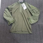 The Vertx Recon Combat Shirt is a men's long sleeve military tactical shirt in size L, designed in a solid green color. Made from a durable polyester cotton blend material, this shirt is ideal for outdoor activities and tactical missions. With its high-quality construction and brand reputation, this shirt provides both style and functionality for those who require reliable gear in demanding situations. New with tags (NWT), this shirt offers a fresh and unworn piece ready for any adventure.