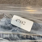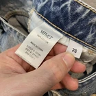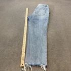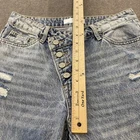 Gently worn with wash fading consistent with the denim style; fabric otherwise clean and sturdy. Distressing, holes, and frayed hems are intentional design elements, with no additional tears or stains. Button fly and pockets are intact and functional. Brand: Vervet Los Angeles Style: Womens high rise straight leg jeans in light wash blue denim with heavy distressed detailing and raw frayed hems. Color: Light blue wash Size on tag: 26 Materials: 100% cotton denim Country of manufacture: Made in China Style/Model details: Style# V2481; Cut# 51635; RN 125578. Features: Button fly with branded metal buttons, classic five-pocket design, belt loops, whiskering and fading on thighs, shredded distressing on front legs, subtle distressing on back pockets, straight leg cut, raw frayed hems with small side slits at outer seams.