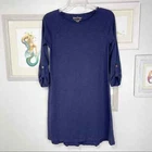 Lilly Pulitzer Navy 3/4 Sleeve Cotton Modal Shift Dress Size is Women’s Extra Small 60% Cotton, 40% Modal Pre-owned, no flaws Gold button cloth tab closure at sleeves Approximate Measurements- Pit to pit: 16.5” Length: 32.5” Sleeve: 17” See photos for additional details. Smoke free & kitty friendly home. Offers welcome!