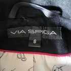 The Via Spiga Pea Coat is a stylish and versatile outerwear option for women in size 6. Made from a wool blend tweed fabric and featuring a double-breasted button closure, this coat is perfect for travel, casual, or business occasions during the winter, fall, or spring seasons. It boasts a classic fit with a collared neckline and long sleeves, making it a timeless addition to any wardrobe. The mid-length pea coat is designed with pleated accents and a solid black color, reflecting a sophisticated and city-inspired theme from the designer brand Via Spiga.