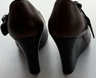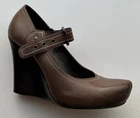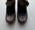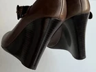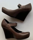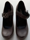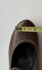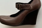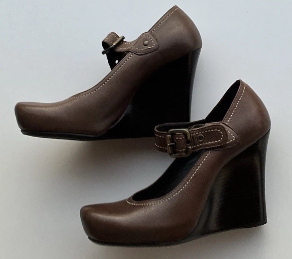 The Via Spiga Women's Italy Brown Leather Strap Block Buckle in size 5.5 is a stylish and versatile heel perfect for various occasions. Featuring a round toe shape, high block heel, and vintage-inspired design, these pumps are sure to make a statement whether you're dressing up for a party or heading to a casual outing. The brown leather upper with straps adds a touch of sophistication, while the buckle closure gives a unique accent to the overall look. Perfect for summer, these heels will elevate any outfit with a touch of Western flair.