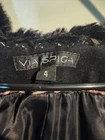 The Via Spiga Women's Wool Faux Fur Trim Coat in size 4 is a stylish and versatile mid-length outerwear piece perfect for both formal and casual occasions. Made with wool insulation and lined with faux fur, this coat is designed to keep you warm during the winter and fall seasons. The coat features a classic black color with a solid pattern, long sleeves, and a hood for added protection. With a zip and button closure, belt pockets, and a regular fit, this coat is a practical yet fashionable choice for any woman's wardrobe.