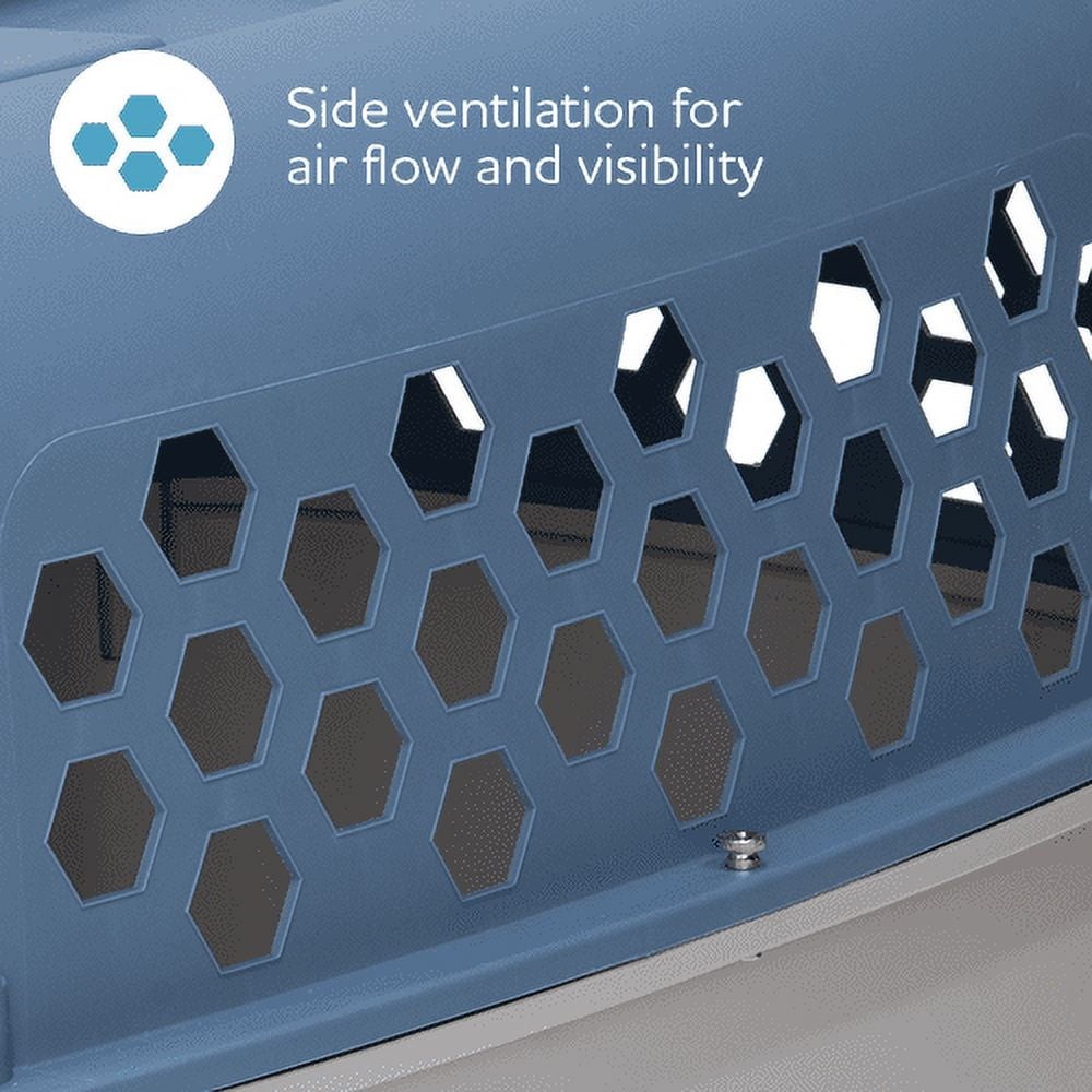 The Vibrant Life Multi-Colored 24-inch Plastic Pet Kennel gives your pet comfort and security. This versatile kennel offers both a front load entrance and a top door entrance for convenient loading and unloading of your dog or cat. This kennel is made from durable heavy-duty plastic and steel wire. Our kennel is perfect for traveling, vet appointments, or house training your new pet. The ventilated features allow for a steady fresh air flow to keep your pet safe, as well as allow visibility to your pet while in the kennel. The Vibrant Life 24-inch carrier is perfect for one or multiple pets up to 30 pounds. The top and bottom easily nest together for convenient storage when not in use. On Jul 14, 2025 at 18:47:02 PDT, seller added the following information: