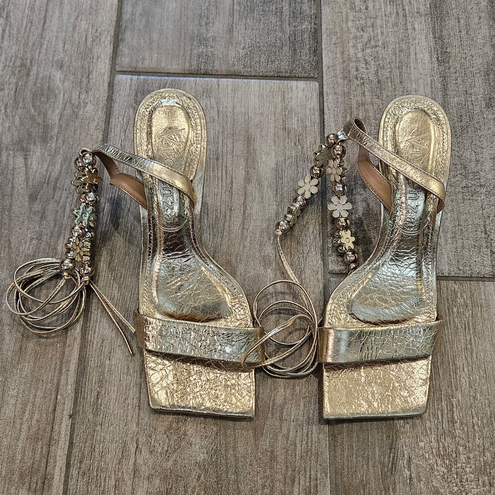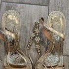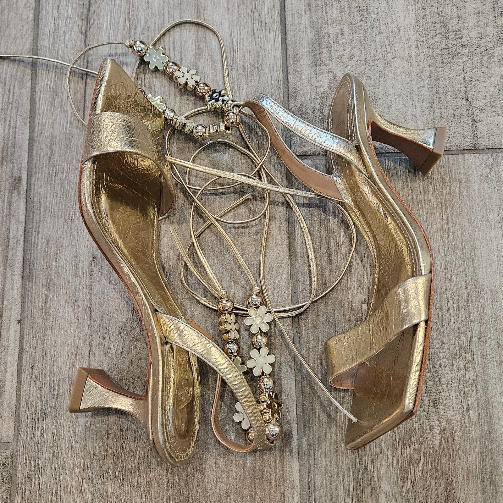 Vicenza Charm Wrap Heels Women 7 Gold Ankle Tie Floral Beaded New Description Vicenza Charm Wrap heels featuring a delicate gold-tone finish, ankle wrap tie design, and floral beaded charm detailing. Elegant mid-heel silhouette that works beautifully for weddings, events, vacations, or elevated warm-weather outfits. Originally sold by Anthropologie. New, never worn. Measurements are included in the photos. Condition New, never worn, no box Keywords Wedding Guest, Special Occasion, Dressy Sandals, Cocktail Style, Feminine Detail, Statement Shoes, Evening Wear, Summer Events, Vacation Style, Romantic Aesthetic, Elevated Footwear, Fashion Forward, Party Ready, Sustainable Fashion, Circular Fashion
