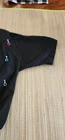 ❤️READ MEASUREMENTS FOR FIT❤️ Victoria Jones Black Top Colorful Beads and Rings Women's M Pre-owned READ. SHIRT IS A MEDIUM BUT SEEMS TO FIT BIGGER OR MAY BE A RELAXED FIT. SUPER FUN 100% Cotton kint top in black with colorful beads and rings along V-Neck and on the front. Back of top is solid black. Top has shoulder pads. Laying flat top measures 23" from underarm to underarm, 17" from shoulder to shoulder, 27.5" from shoulder to hem, and sleeve measures 8.5". ALL MEASUREMENTS ARE APPROXIMATE VERY good Pre-owned condition. ❤️READ MEASUREMENTS FOR FIT ❤️