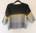 Victoria's Secret Multicolored Striped Chunky Oversized Sweater -In excellent condition -Striped design with hues of gray, yellow, brown, and black -Very boxy and oversized for (according to measurements can fit up to an XL) -Thick, chunky knit design -Slight high low cut, perfect to do a front tuck into jeans -Very soft and warm with a great mix of materials -Women's size S 64% Cotton 22% Acrylic 12% Wool 2% Alpaca Measurements taken with garment laying flat Pit to pit: 28" Length: 17" in the front 20" in the back