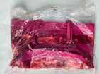 The Victoria's Secret Oversize Pink Canvas Sequence Tote is a large tote bag with a striped pattern in shades of pink. It features pink handles/straps, silver hardware, and is made of lightweight canvas material. The tote has a spacious interior with pink lining, making it suitable for carrying beach essentials or everyday items. Perfect for those who love a vibrant and stylish bag, this Victoria's Secret tote combines a beach and American theme to create a fun and fashionable accessory.