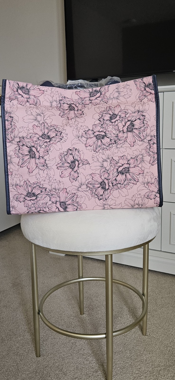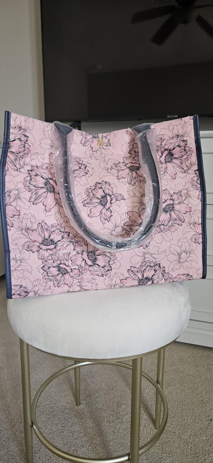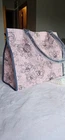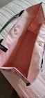 The Victoria's Secret Pink Floral Tote Bag is a stylish and practical tote perfect for casual occasions. With a large rectangular shape and double blue-gray handles, this lightweight bag features a magnetic closure and a pink floral pattern on the canvas exterior. The bag also includes a logo accent, and is part of the limited edition Victoria's Secret Weekender Bag collection. Ideal for travel or trips to the gym, this tote offers both fashion and functionality in a modern design.