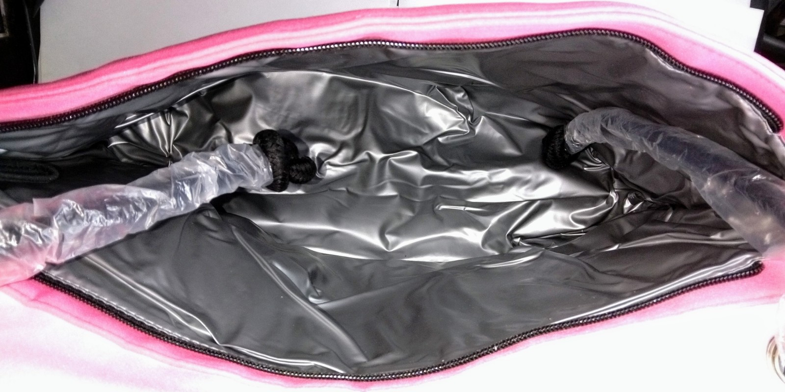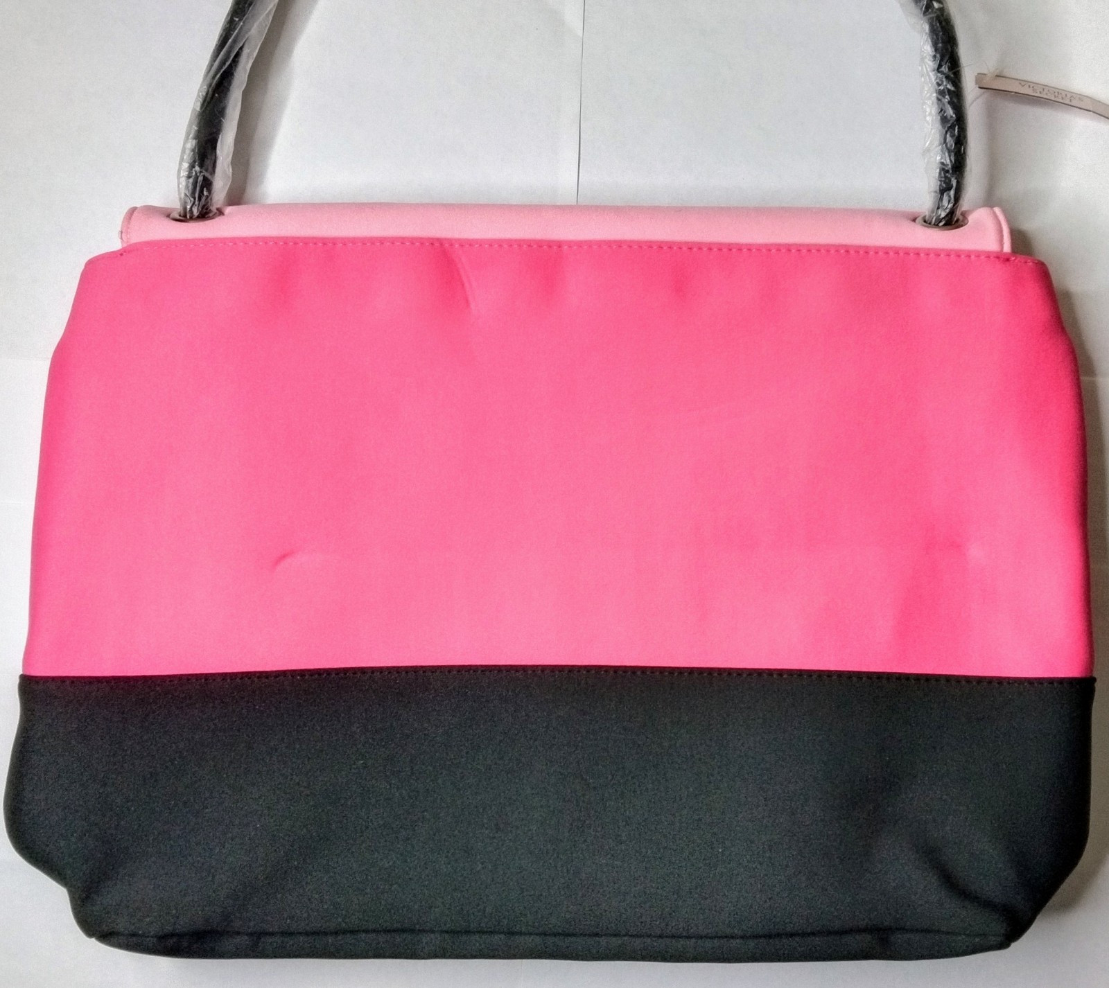 Victoria's Secret Pink Insulated Lunch/Beach Tote Bag is a medium-sized tote in pink with black handles/straps. Made of canvas with a polyester and nylon exterior, it features a zip closure and a pink lining. The tote is part of the Victoria Secret Love Pink product line and is designed for women. Its insulated feature makes it ideal for keeping food and drinks cold while on the go.