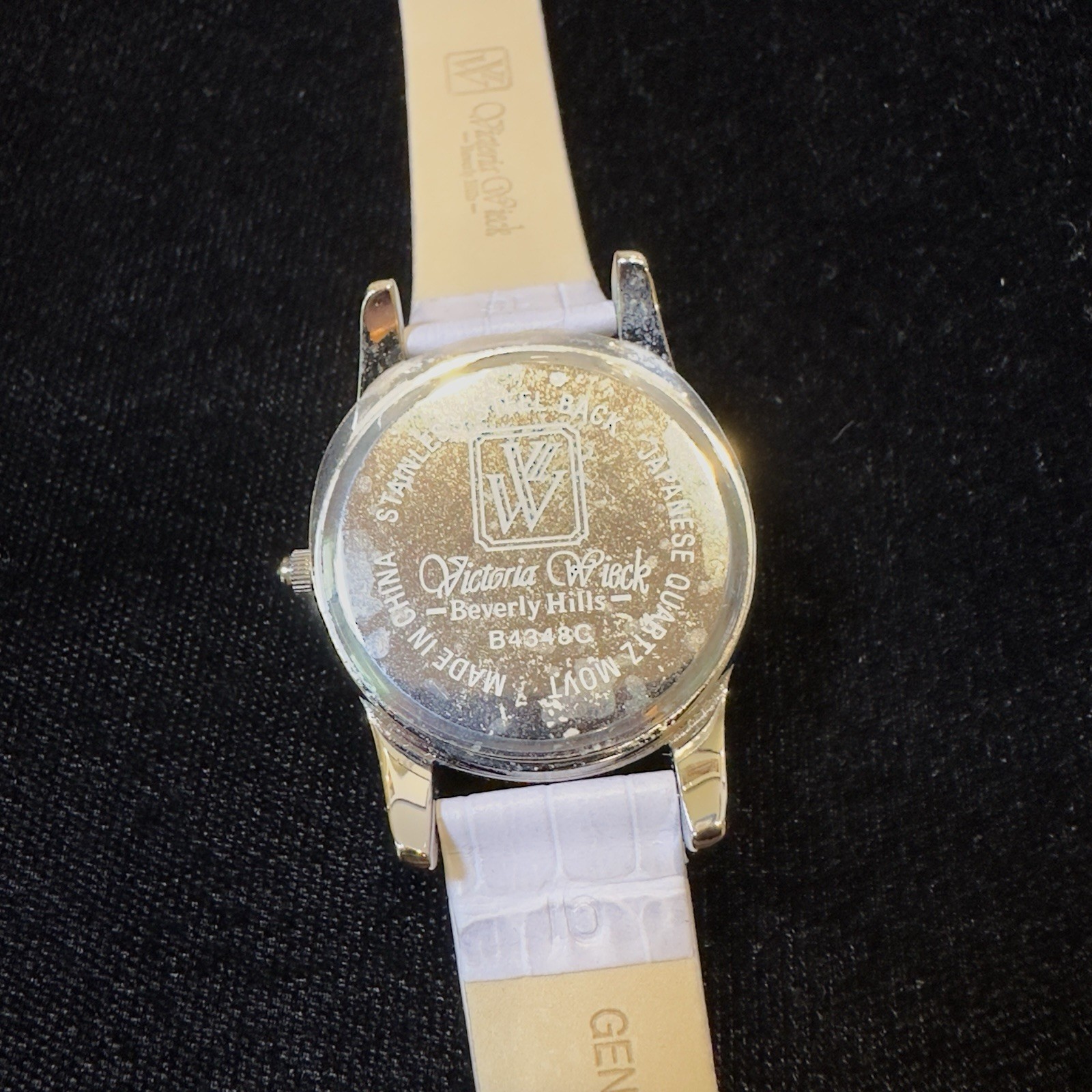 PRE-OWNED: please look at photos for more information. Grandmothers watch she wore a handful of times. Not tested, most likely needs batteries. The Victoria Wieck Beverly Hills Crystals Quartz Women's Watch features a luxurious design with a rose crystal bezel and silver base metal case. The watch has a quartz movement and a leather gray band, adding to its elegance. With a snap caseback and no hour marks on the dial, this wristwatch is a stylish accessory for any woman looking for a touch of sophistication. Perfect for everyday wear or a special occasion, this watch exudes glamour and class.