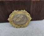Early 1800s mourning brooch that has woven hair under original glass. The hair is a mix of light and brown in a pretty arrangement. The brooch has a C clasp and tube hinge. The front is 10k gold front and silver tone in the back. The brooch measures measures 1 1/8" high and 1 1/2" across. The pin extends 1/8" from the edge. The stem is wavy but fits well in the C clasp. Nice antique condition. The glass is very nice. Please see photos as part of the description. They are enlarged to show detail. Thank you for looking! From a smoke free home. Check out our other items ! Be sure to add us to your favorites list ! Thank you for viewing our auction. Stop in again. We have a huge collection of vintage & antique jewelry and collectibles. Have fun and happy bidding! Ohio residents pay applicable sales tax.