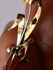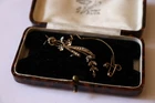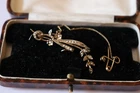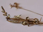 Antique Victorian Ornate Gold 9ct Brooch, with a spray of leaves, some small flowers and a moon. All dotted with micro seed pearls. Has a safety chain also In good vintage condition - (see photos)! Measures 4.6cm length Comes giftwrapped. I happily combine postage!! Thankyou so much.