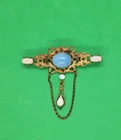 The product is a Victorian brooch made of goldtone metal and adorned with unknown stones. It is unbranded and falls within the category of vintage and antique jewelry, specifically brooches and pins.