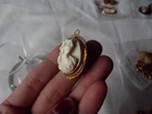WE HAVE OVER 30+ CAMEO'S BEING LISTED FROM A LONG TIME COLLECTION, SO DON'T FORGET TO CHECK OUT OUR OTHER CAMEOS This is a gorgeous antique Brooch / Pin that also has a loop to use as a Pendant on a Necklace. It is Victorian age, c.1900. This cameo is well carved with extra details, fine hair and facial lines, neckline of the dress and the leaves in the hair. In the traditional style of a Bacchus or Dionysus, but this cameo has an extra high relief , this is a thick piece carved to really jump out at you- possibly museum quality in my opinion. This cameo is made from carved pink and white color shell, that looks like Angel Skin color to me (the last picture above shows the way light shines through the pink background.. This is marked "10K" on the clasp, it is all solid 10 kt gold. However there is also a makers hallmark of O.E.H. on the setting as well- I have not been able to figure this out- it seems to be a very rare hallmark. But I did find one mention online of a Swedish jewelry maker using O.E.H. at one time around 1913 by the name of " Haeggman, O. E.", in Sweden I can see that this was very finely made by not only the extraordinarily high relief carved like a bacchus, but also by the craftsmanship of the setting. The setting is a lovely well put together filigree style setting, however the little hinged pendant loop was very well done and the pin clasp is an odd style I have never seen before where you place the pin inside the closure and push the lever on the side to hold the pin in place... Very interesting and high quality piece of art here. Measurements: 1-1/8" long by 7/8" wide (total dimensions). Condition: This is in good condition for its age, the clasp/pendant loop will work and it is ready to wear. *No Returns/Refunds Policy*...Please Note that we do not accept returns or refunds. This is for 2 reasons- We sell antiques / vintage goods, therefore they are used, I provide photos of the exact items and not stock pictures so you can always see the exact item you will get. Also all of our auctions are "Free Shipping" to our buyers, but I still have to buy postage and it is expensive! I cant give full refunds on items when I cant get refunds on my shipping cost. Please see the many pictures above, read our descriptions, and ask all questions before bidding as we will respond, and there should be no problems... Thank you *Damaged in shipment*... All of my items are insured against damage in transit. All insurance claims are filed online now & there may be a delay in how long it takes the insurance company to process the refund, also USPS claims may require items to be physically taken the post office for inspection should they ask for them- often photos are not enough for the claim to be processed. *Items lost in shipment or not received*... If they are lost in transit, we will be required to wait the specified time by the shipper to file the insurance claim- there is no other way to do this as that is their rules and we will have to wait their time limits. *Please note all of my jewelry listed as "vintage" is true vintage age jewelry, or even older being antique. I do not sell reproduction jewelry and label it vintage like I see a lot of sellers doing these days with their "vintage style" jewelry. You can be assured you will receive an authentic vintage/antique aged, unique collectible piece of jewelry when you buy here! Costume jewelry is an item that has been collectible for many years and there is no decline in its value in sight in the future- pieces tend to become more collectible and valuable over time making them a great investment- find more great pieces for your collection in our store by clicking the following link- More Vintage/Antique Jewelry