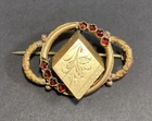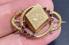 Victorian 14k Yellow Gold Plate Garnet Floral Etched Brooch Pin See Description. First class package The piece is Victorian era yellow gold plated. In good condition however the back of the pin is broken and needs repair Some gold loss (see photos) item is being sold as is. Measures about 1 1/2”x1” and weighs 8.5gr Please check your pictures as they are part of the description and please ask questions prior to purchase. I do accept 30 day returns! Also, eBay now charges sales tax in certain states. I do not get the money or have any control over this additional cost. If I advertise a piece as gold or silver and it is unsigned or unmarked then it has been tested to ensure purity and quality. We are always willing to accept offers especially when purchasing multiple items. We are not experts but have a general understanding of everything that we sell. We will always combine shipping by weight of combined items. We will also do our best to provide top class communication and rapid shipping so you can use and treasure your item ASAP Finally, your feedback is important to us. If you were happy with our service, communication, shipping time, etc let us know but please, prior to leaving a negative or neutral review please contact us and we will do everything in our power to work on a mutually beneficial solution and make it right for you. Customers are #1 and we just want our customers happy with their purchases