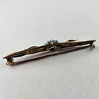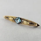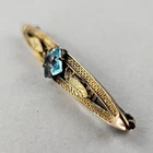 Victorian Brooch Pin Bar with Blue Glass Gold Filled [7891] Up for purchase is an awesome Antique Victorian Gold-Filled Brooch Pin Bar with Blue Glass. The brooch has nice workmanship. The detailed design has a great look. The brooch measures 2 inches long by 3 / 8 inch wide . The Antique Victorian Gold-Filled Brooch Pin Bar with Blue Glass is in good pre-owned condition. Please see photos. Payment We would appreciate payment within 3 days of the sale. Shipping We ship within 24 hours (Monday - Friday) of receiving cleared payment. We love to combine shipping, so please email us to let us know if you are bidding or buying additional items. Please email us with your request before paying. Shipping may delayed for a few days if we are away from home at an Antique Show or on a buying trip. Terms of Sale We do our best to describe items as accurately as we can. We sell used vintage items that will likely show normal wear and tear. We recommend that you email any questions before you bid. Items are sold as-is. We want you to be happy with your purchase. If for some reason you are unhappy with your purchase, PLEASE contact us before leaving feedback so that we can resolve the issue. GUARANTEE Every item is guaranteed to your satisfaction, and if it does not meet your expectations, you need to start the return process with eBay. I have free returns, so print out a label and mail the item back to me. We will refund your payment only upon immediate return of the item in the same condition and method in which it was mailed or its equivalent.
