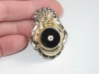 Victorian Brooch Pin Jewelry Onyx Enamel (VT98) very good, this is approximately 1 7/8" tall, this has some cleaning paste in its groves but overall in good condition, a nice old piece THE LETTER AND NUMBER AT THE END OF MY TITLE IN PARENTHESIS IS FOR MY OWN IDENTIFICATION/SHELF NUMBER AND DOES NOT HAVE ANYTHING TO DO WITH THE LISTING. You will receive an item tagged with my personal identification number I have noted in parenthesis at the end of the title. If there is no identification number at the end of my title in parenthesis one will not be included with your shipment. I am making this disclaimer because my personal identification number listed in the title sometimes confuses people. Thank you!! NOTE: Any letter and number in parenthesis, in my title, is my shelf number, it has NOTHING to do with the listing besides for my identification. Thank you for taking the time to look at my listing. I always have new inventory coming in so please keep checking back for many more great items. Any letter and number in parenthesis at the end of my title is for my purpose in locating the item on my shelves. Again, thank you and I look forward to providing you excellent customer service! My inventory is always changing keep checking back for more great items!Keep checking back for more great items. My inventory is constantly changing!