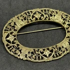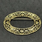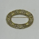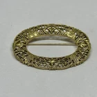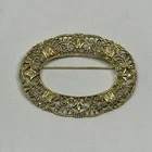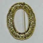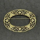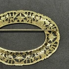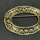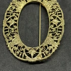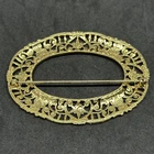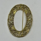 Victorian Brooch Sash Scarf Pin Filigree Vintage Scroll Oval Frame Large 2 7/8". Roll over safety clasp is in working condition. Brooch is preowned and in great condition with little to no signs of wear. Very lovely brooch. Please consider images as an integral part of item description. Estate and vintage items normally have been loved and used, so pieces may have signs of wear. May need to be cleaned. You will receive what is in the picture. Contact me with any questions or for additional photos. Thank you for looking. If purchasing more than one item, any extra shipping fees will be refunded when order is processed and shipped.
