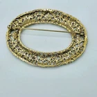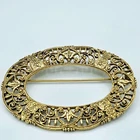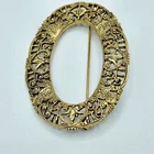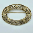 Victorian Brooch Sash Scarf Pin Filigree Vintage Scroll Frame Large. Antique Goldtone. 3". Unsigned. In great vintage condition.