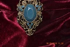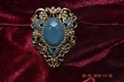 Victorian Brass brooch with greenish/blue enamel. 2.5" x 1.5"