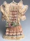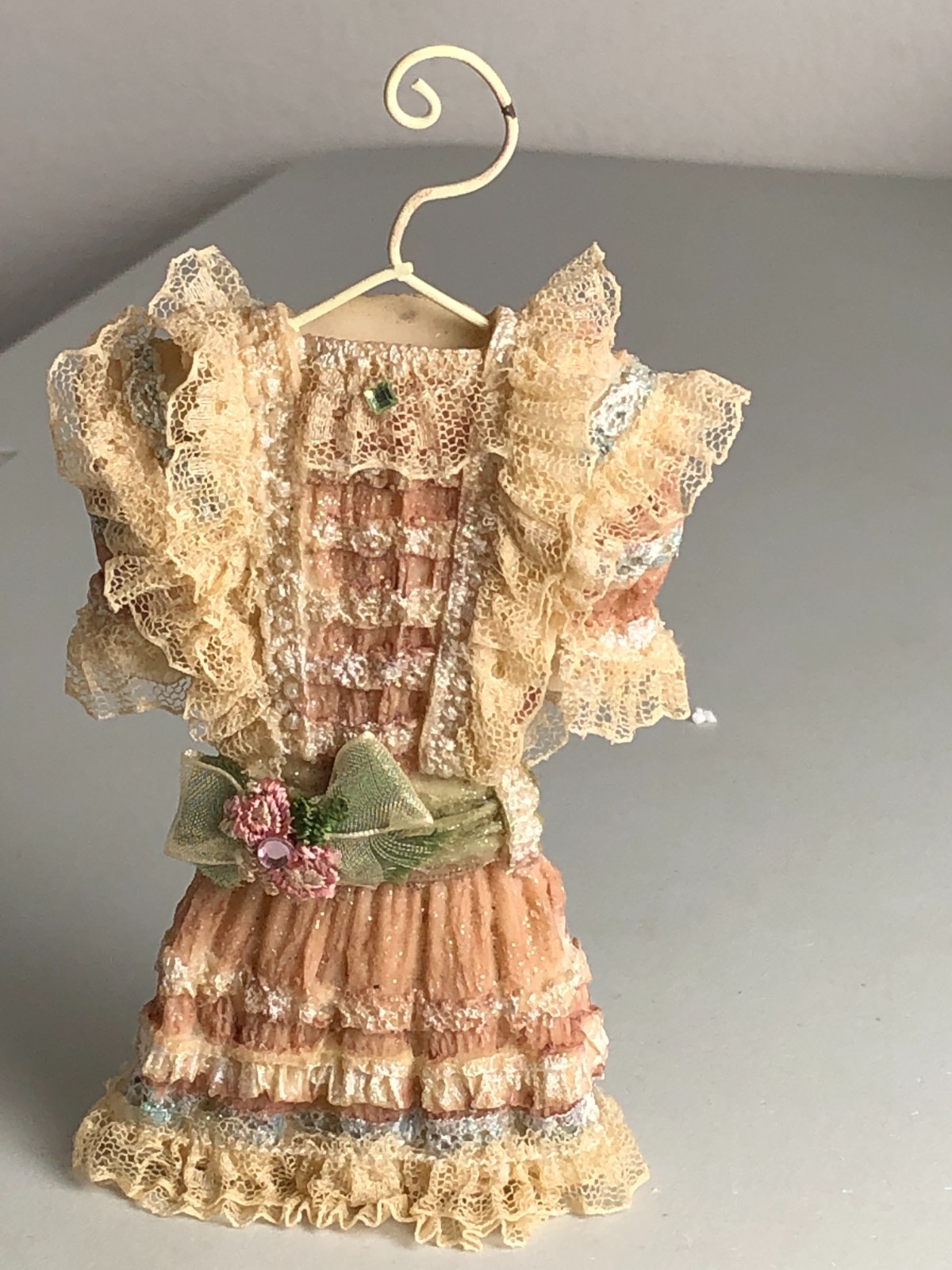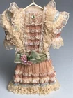 Victorian Ceramic Dress lace ornament pink off-white Some wear on hook.