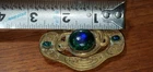 The brooch is in good condition. One of the small gems has a chip in it. This has a cat's eye look to it. Excellent colors. Victorian era from the estate of a 96 year old woman who was a brooch and button collector. Please see the pictures. Thanks for looking!