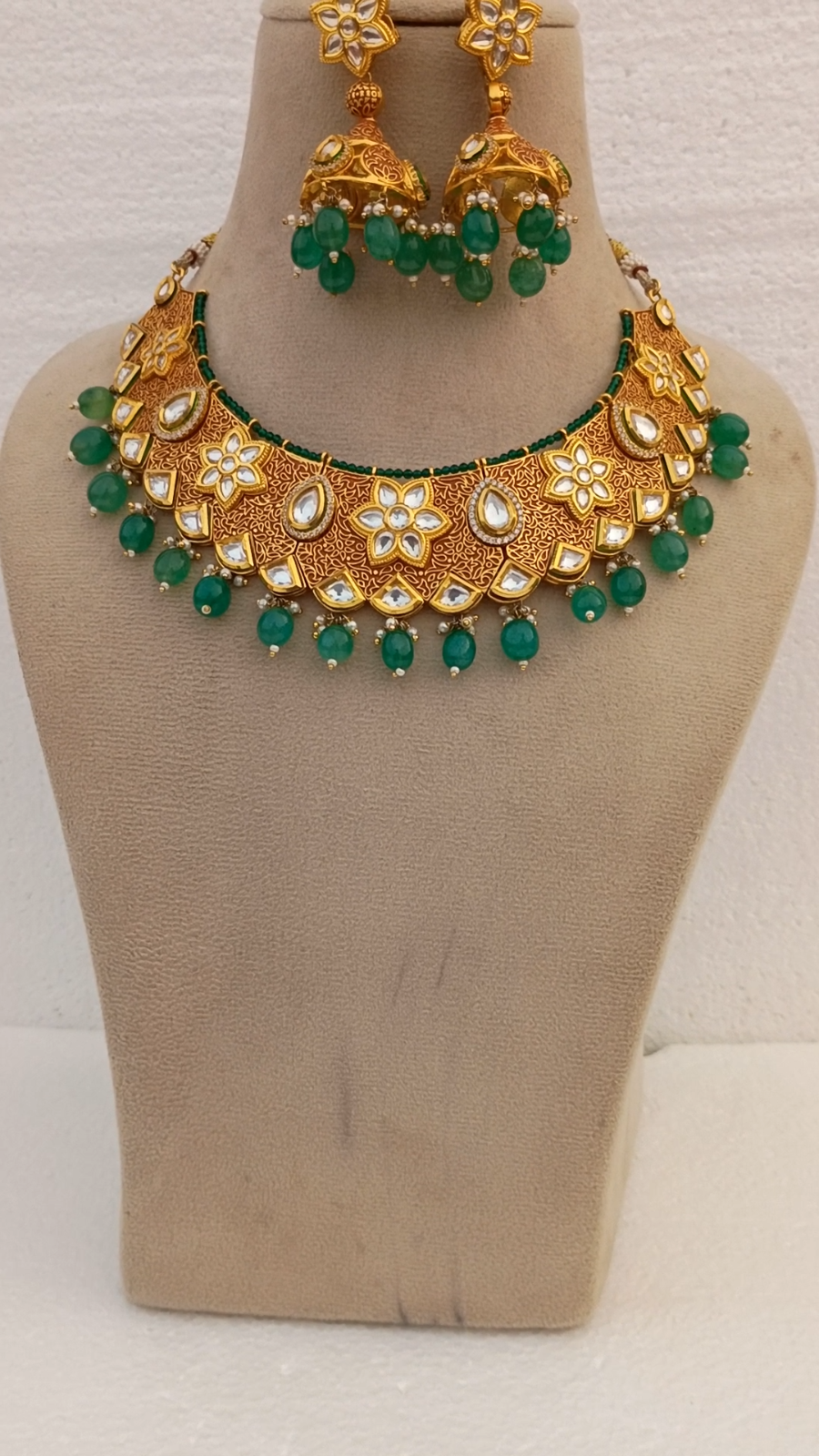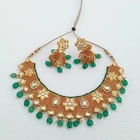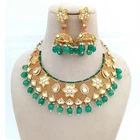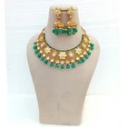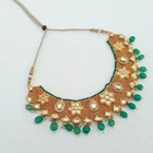 Elevate your bridal look with this Emerald & Polki Diamond Necklace Set, a stunning piece of Indian traditional craftsmanship. Handcrafted with intricate detailing, this jewelry set is designed to bring elegance and sophistication to weddings, festive occasions, and special celebrations. ✨ Product Details: Gemstones: Emerald & Polki Diamond Kundan Colors: White & Green Stones Finish: Premium Gold Plating Without Chain Length: 4 inches (approx.) Total Length: 15 inches (approx.) Weight: 129.67 grams (approx.) SKU: 606 Includes: Necklace & Matching Earrings 💎 Why You’ll Love It: Perfect for brides and wedding guests Statement-making traditional Indian design Ideal for weddings, parties, Bollywood looks, and festive occasions Makes a luxurious and thoughtful gift ✨ HIGH QUALITY: We take pride in crafting each piece by hand, using only the finest materials. Our products undergo rigorous sanitization processes to ensure your safety and satisfaction. ✨ DAZZLING: Our handmade necklace exudes a superior charm, effortlessly elevating your look for any occasion. Whether you're at the office or out for an evening event, its minimalist yet boho-inspired style complements every outfit with grace. ✨ OUR SERVICE: Your satisfaction is our priority. Should you have any questions or concerns, our dedicated team is here to assist you promptly. Expect a response within 24 hours, ensuring a seamless shopping experience. Indulge in the splendor of our Long Handmade Necklace, a timeless statement piece that embodies the beauty of Indian craftsmanship and style.