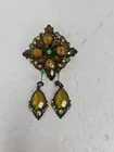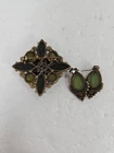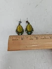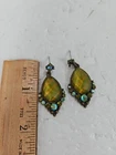 Good condition. Various shades of green and blue Antiqued gold metal settings. Drop pierced earrings. No backs. No missing stones. See photo's for size and detail.