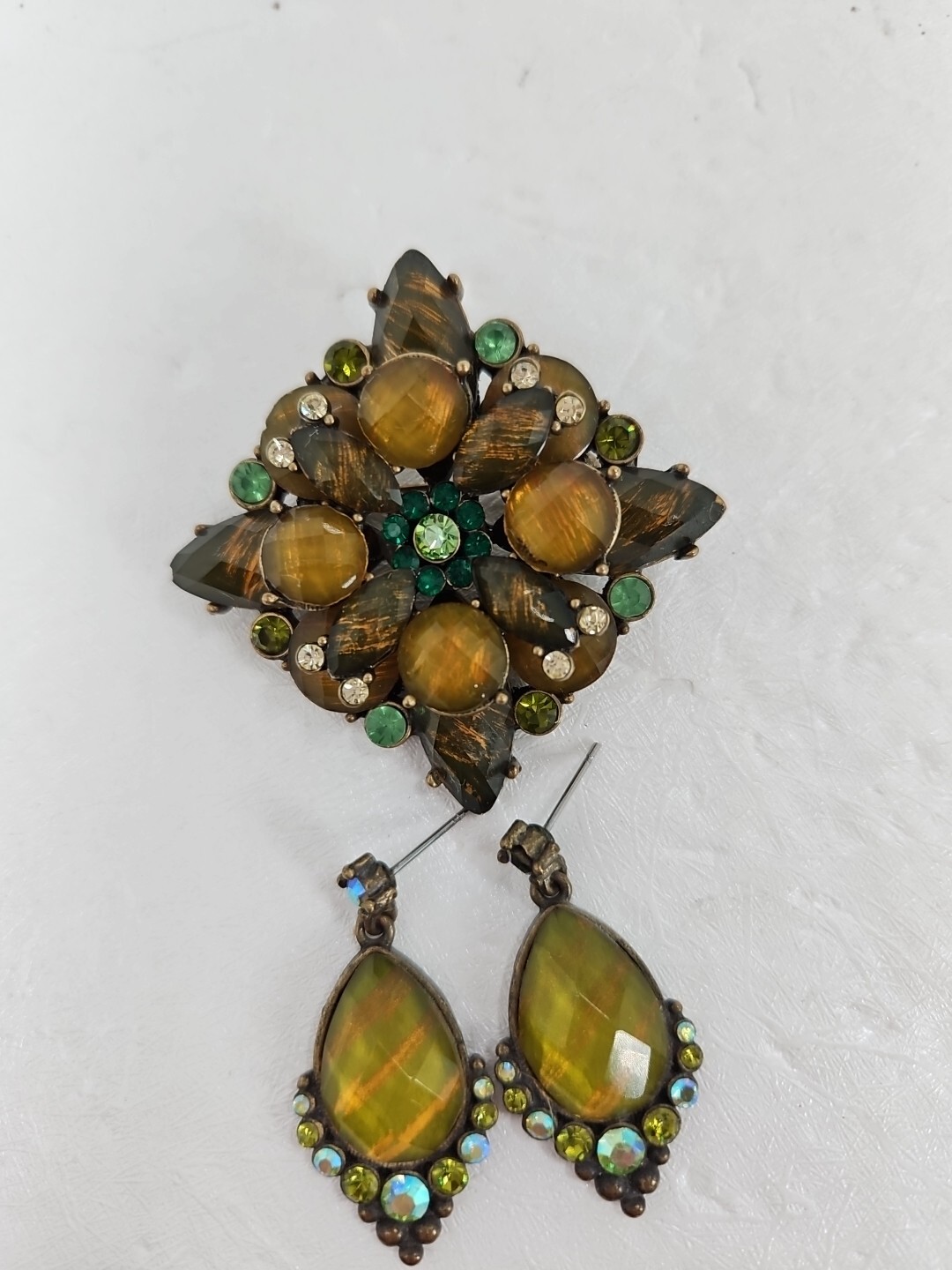 Seller worked with me on price and delivered the purchase so well packaged! No way was it going to be smashed or damaged by weather! The earrings look even better than their photos. I'm so pleased because I already have the bracelet and brooch. 5 stars!