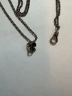 This item being offered is a antique ladies watch slide on 48" worn gold filled chain. The slide is approx. 7 mm X 9mm in size. I am not sure what the stones are, so guessed. They stones are fine with little to abrasion. The chain shows signs of wear, but all original. Selling in AS-IS condition as pictured and described. Buyer to pay $5.00 shipping US, out of country $16.00 first class international mail.