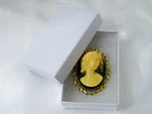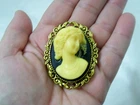 Welcome Beautiful Victorian 3D lady cameo brooch in a gold tone setting. It's about 2" high and 1.5" wide with a pin clasp on the back. Please see pictures for close ups. Check out my other cameo brooches. Budget friendly for gift buying or buy one for yourself and give one as a gift. Very nice quality. Each cameo will be in their own white gift box. All sales are final, No exchanges, refunds or returns. Please choose your item carefully. I'm happy to combine shipping Please let me know when your finished shopping and I will send you a combine shipping invoice. Ebay will not combine your invoice. I have to do this manually. Please contact me before you pay if you would like combined shipping. I cannot do this if you pay first and then contact me. International buyers: Custom fees are not included in the shipping. Please contact your postal service to find out what custom fees are. I cannot tell you. Be sure to look at all the pictures for details. I have many other items in my Ebay store.