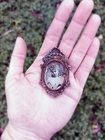 This splendid cameo is so well-suited to my idea for a gothic Steampunk ensemble I'm making that it's legitimately scary. It is perfection in colour, description and size. Arrived unblemished as seller mindfully sent it in a sturdy box with a lovely organza bag. Shipping was quick though arrival was tardy (no fault of the seller). My only regret is that I did not discover these clever curiosities sooner. Enthusiastically recommend!