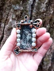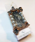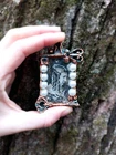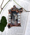 - decorative art brooch - handmade, hand-painted, one-of-a-kind - around 1.5 x 2.75 inches - fiberclay, acrylic paint, silverleaf, epoxy resin, faux pearls, metal pin mechanism - comes in a silk gift pouch - unique, collectible item directly from the artist This faux vintage one of a kind handmade brooch is made of lightweight fiberclay painted to imitate distressed bronze finish. The piece features an image of a mysterious Victorian lady which was recycled from a used book. Romantic, nostalgic and exquisite, it is a perfect unique art gift for any occasion!