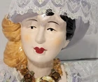 Figurine 5in Floppy Hat Lace Ceramic Vintage Victorian Bust Lady Head Approx 5" tall I consider to be in very good preowned condition - There is a tiny white spot in her hair by ear - its not a chip just paint flaw or scuff I am not sure if it is ceramic or porcelain Please view all photos zooming in on them as they are part of the description for you to judge condition