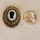 Vintage Victorian Cameo Brooch Lady Silhouette Old Money Statement 7050 Slight wear (see pics) No original packaging This is a pre-owned item and may show slight wear, need to be cleaned, polished, etc. Measurements are approximate: Length: 1.5" Width: 1.25"