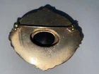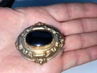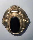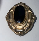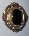 Up for sale is a Victorian Style Mourning Brooch Gold-Tone Black Onyx with Flowers & Scrolls - Costume Jewelry. Brooch measures approx 1-3/4” wide by 1/2” high. Vintage condition, shows wear. Please inspect the photos and email with any questions. Thanks for looking!