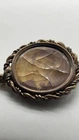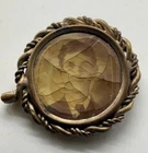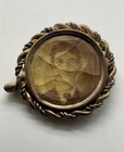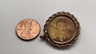 Antique tin type brooch featuring very old photograph of a Victorian gentleman. Memento mori mourning style brooch likely created in memory of a loved one. Photo has visible crazing. Unknown if hair is behind rear panel.