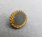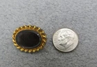 Tiny mid 1800s mourning brooch that has hair under original glass. The hair is dark and tightly woven. The brooch has a C clasp and tube hinge. There are some dark/black enamel style details on the tips of the twist style edges. The brooch measures measures 5/8" high and 7/8" across. The pin stem is slightly wavy but fits well in the C clasp. The piece is in nice antique condition. The glass is very nice. The gold plated surface has normal mild surface scratches and some wear. Some of the enamel is worn. Overall, nice looking antique piece. Please see photos as part of the description. They are enlarged to show detail. Thank you for looking! From a smoke free home. Check out our other items ! Be sure to add us to your favorites list ! Thank you for viewing our auction. Stop in again. We have a huge collection of vintage & antique jewelry and collectibles. Have fun and happy bidding! Ohio residents pay applicable sales tax.